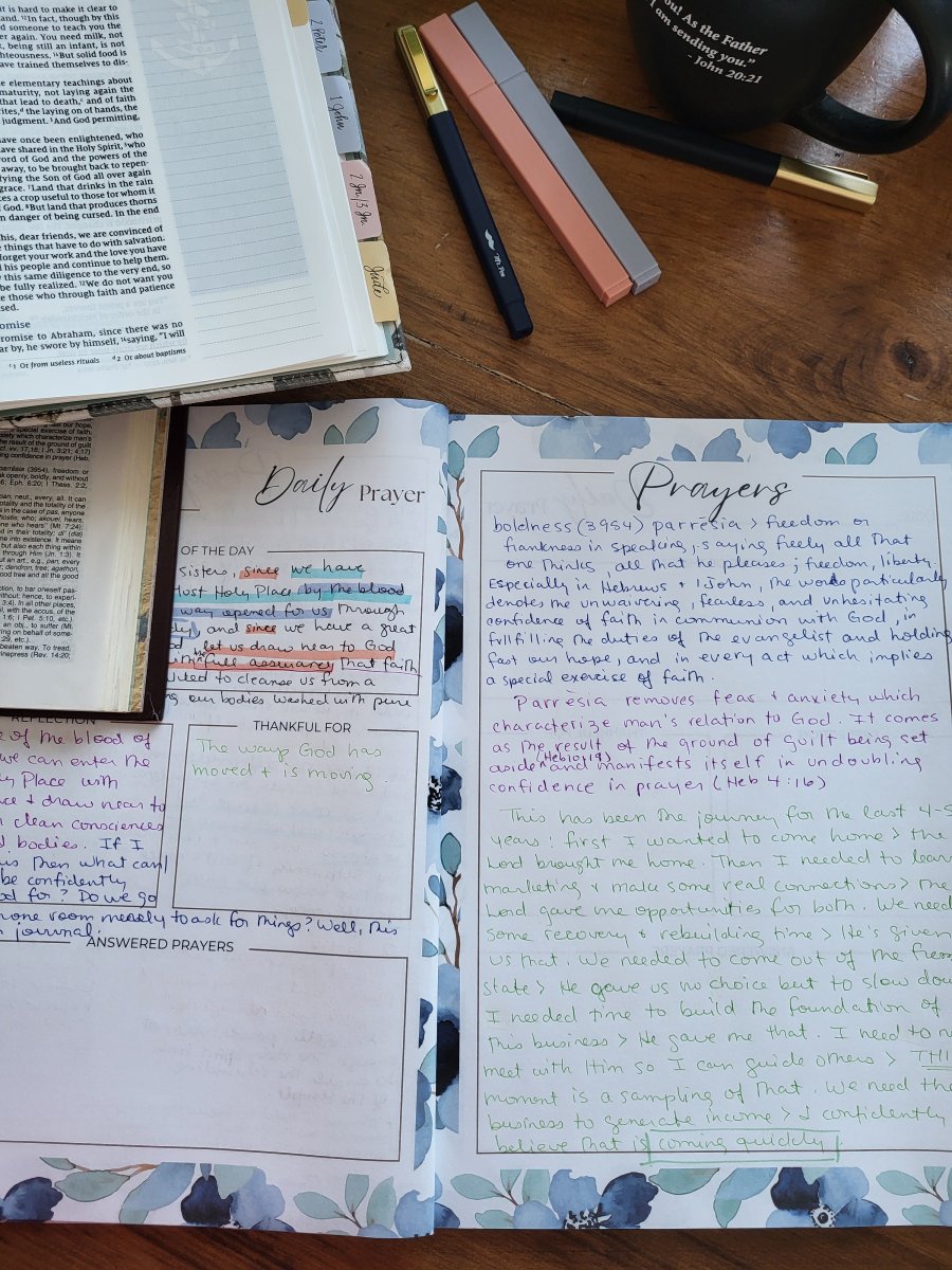 Before I open my Bible or journal, I simply pause and pray. It doesn’t have to be complicated or fancy—just honest. Sometimes my prayer sounds like: “Lord, I’m here. I’m distracted and tired, but I want to meet with You. Show me what I’m missing. Soften my heart and help me see Your promises for me in this passage.”